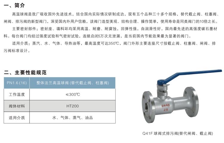 本公司設(shè)計生產(chǎn)的一體式防泄漏耐磨耐高溫排污球閥采用進口對位聚苯閥座。法蘭標準有:國標、美標、日標、德標法蘭。材質(zhì)有不銹鋼、碳鋼球閥、合金鋼。