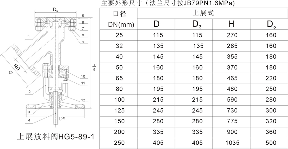 主要外形尺寸(法蘭尺寸按JB79PN1.6MPa)