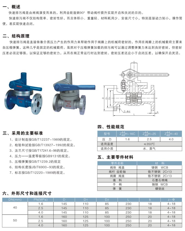 快速排污閥Z44H、P44H、Z48H、P48H